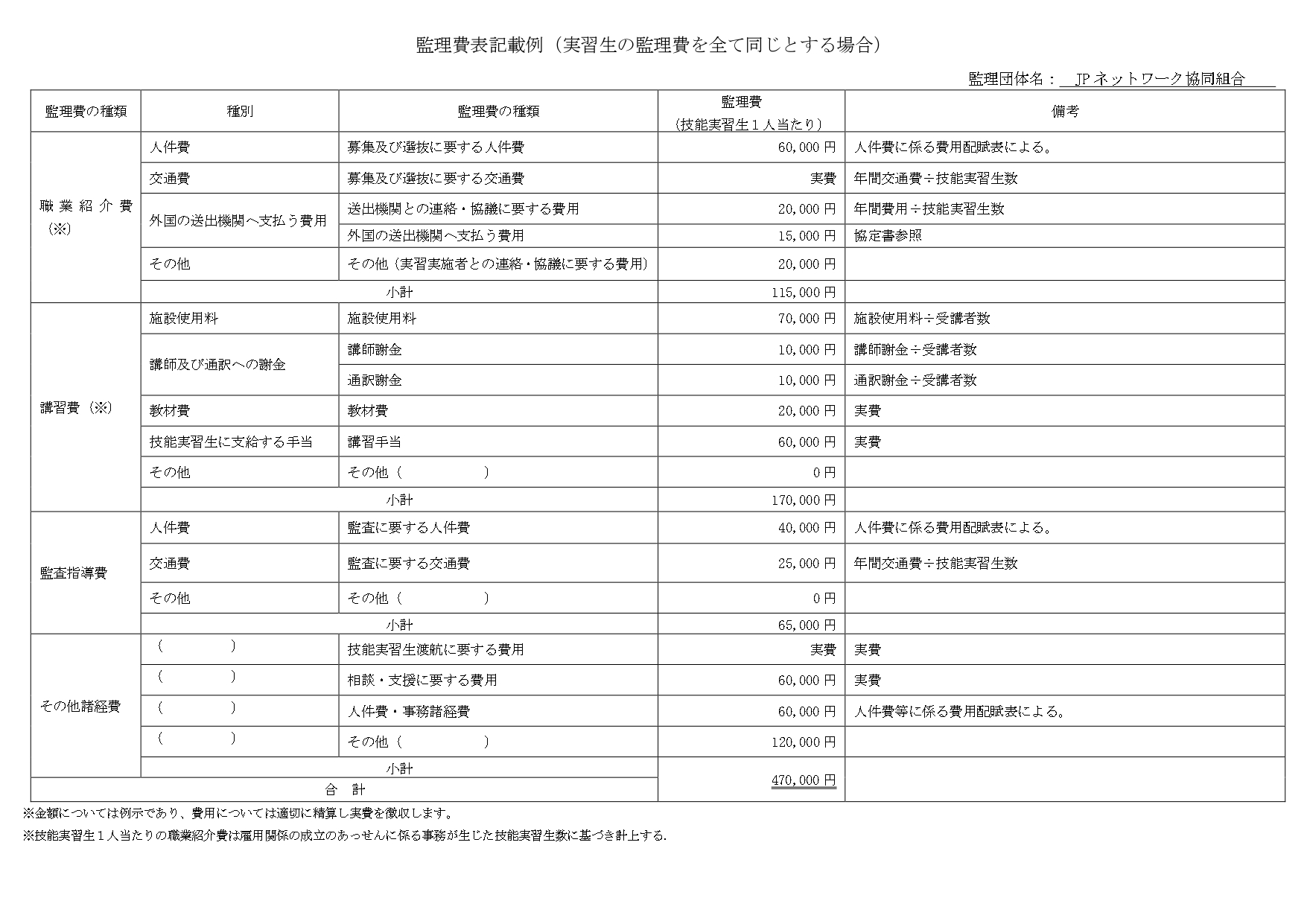 1 監理費は、団体監理型実習実施者等へあらかじめ用途及び金額を明示した上で徴収しま