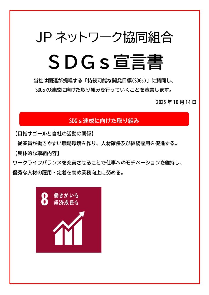| 会社名 | JPネットワーク協同組合 (管理団体許可番号 許2208000146) (登録支援機関 登録番号25登-011707) |